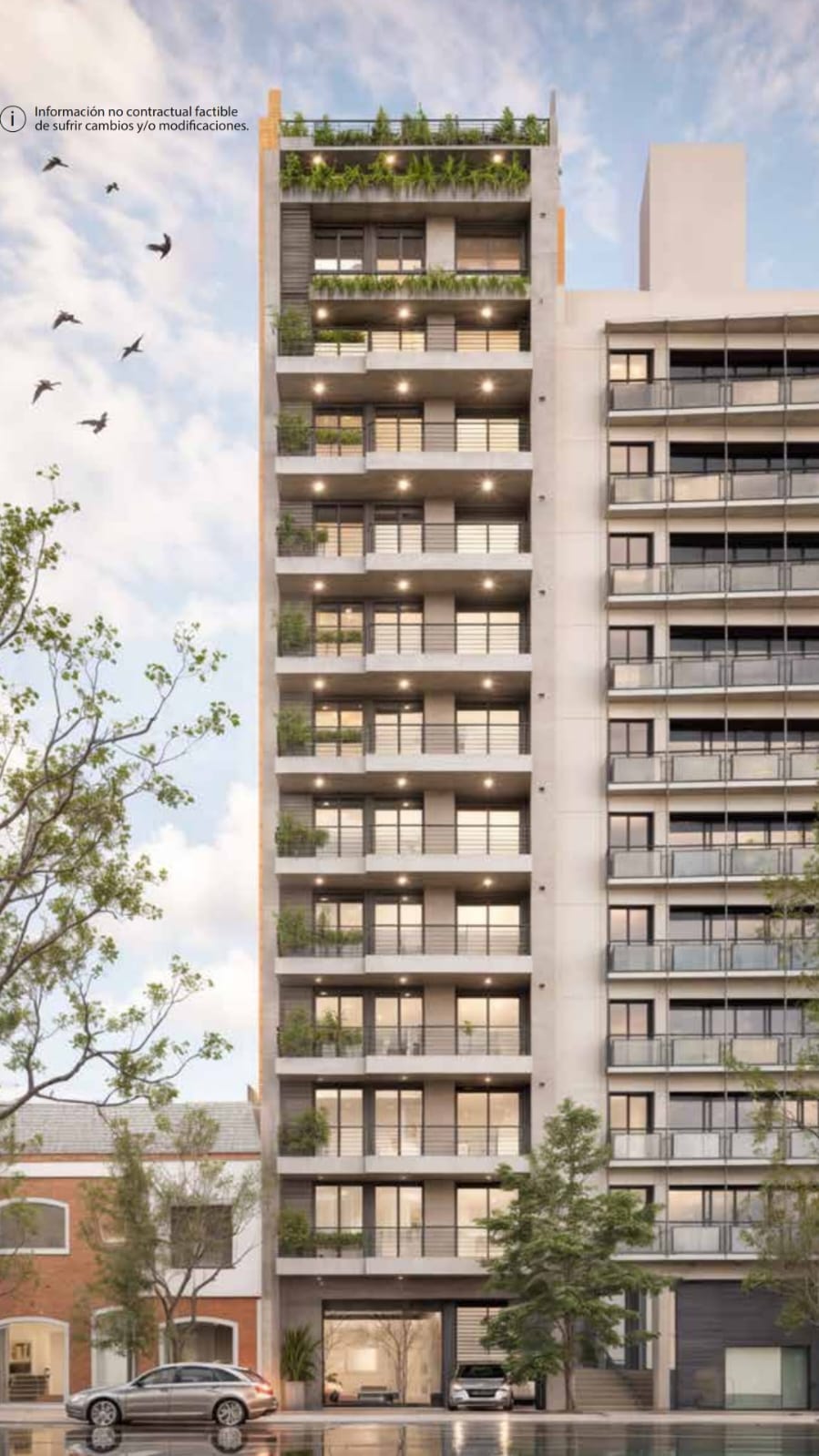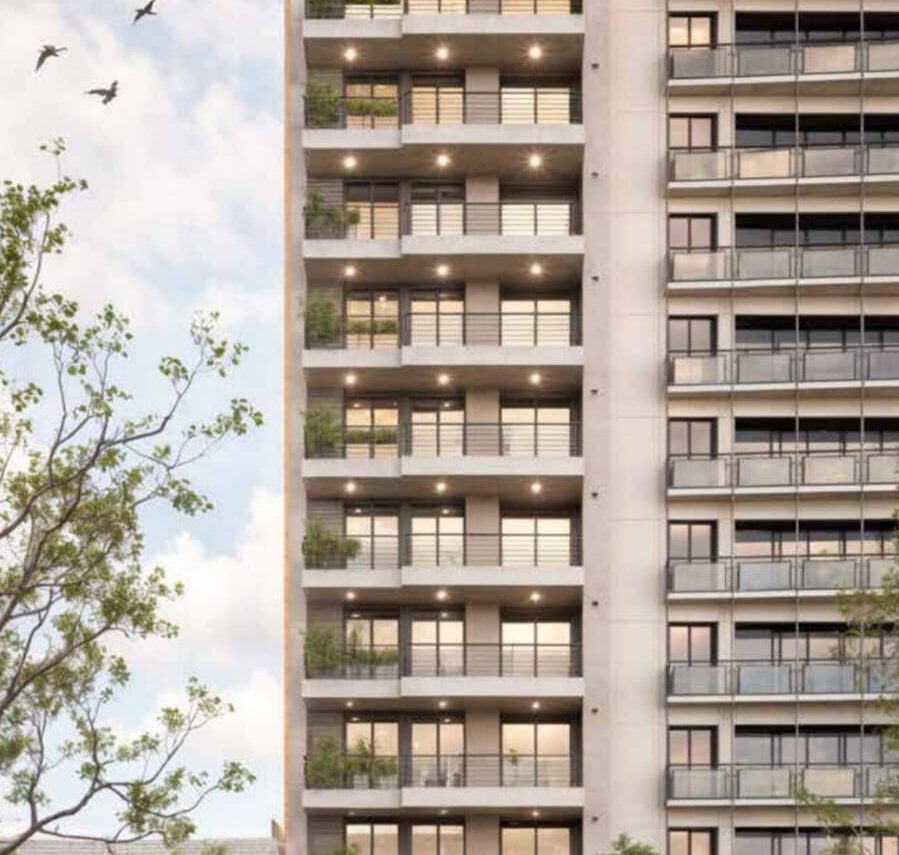 Con una estructura de 13 niveles, más planta baja y un subsuelo, el edificio cuenta con dúplex en los pisos 10 y 11 y áreas de amenities en azotea. Dispone de 26 unidades — monoambientes, departamentos de 1 y 2 dormitorios, y dos dúplex (uno de 2 dormitorios y otro de 3 dormitorios) — diseñadas con una distribución moderna, funcional y eficiente.