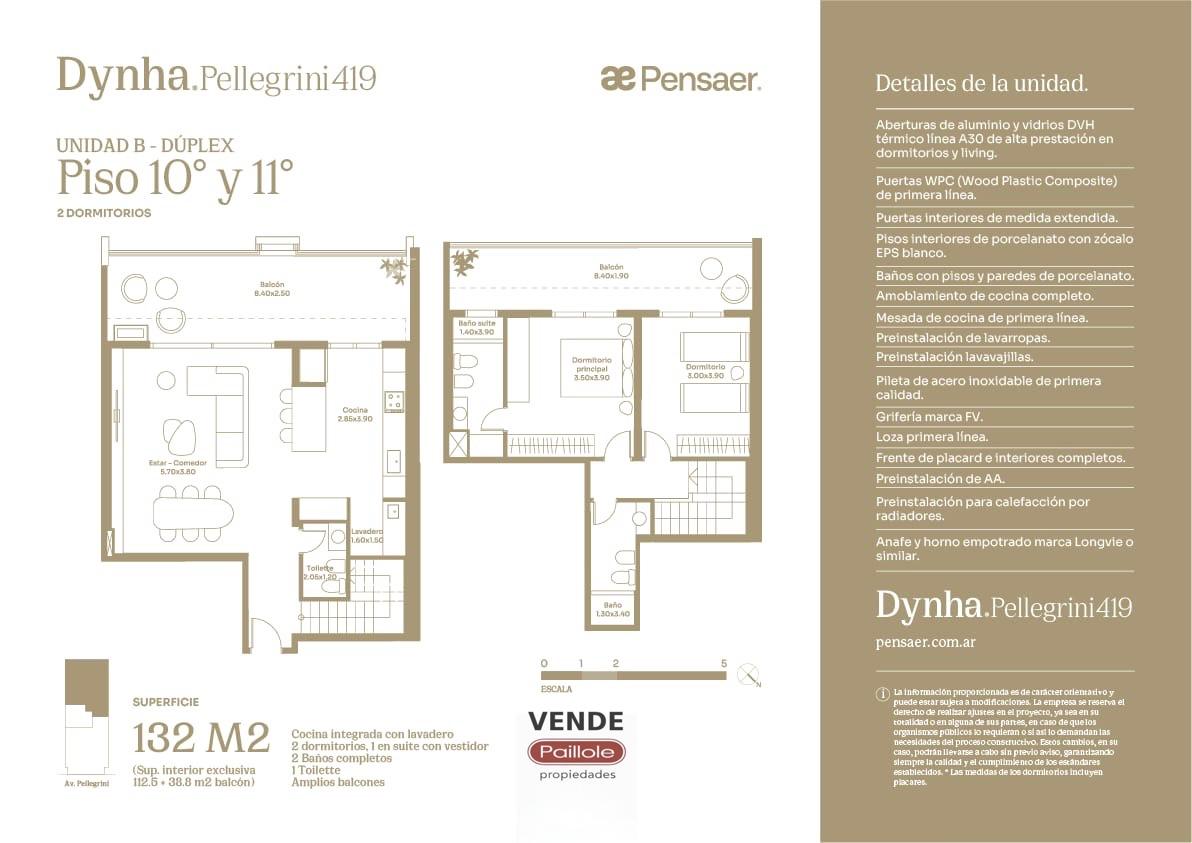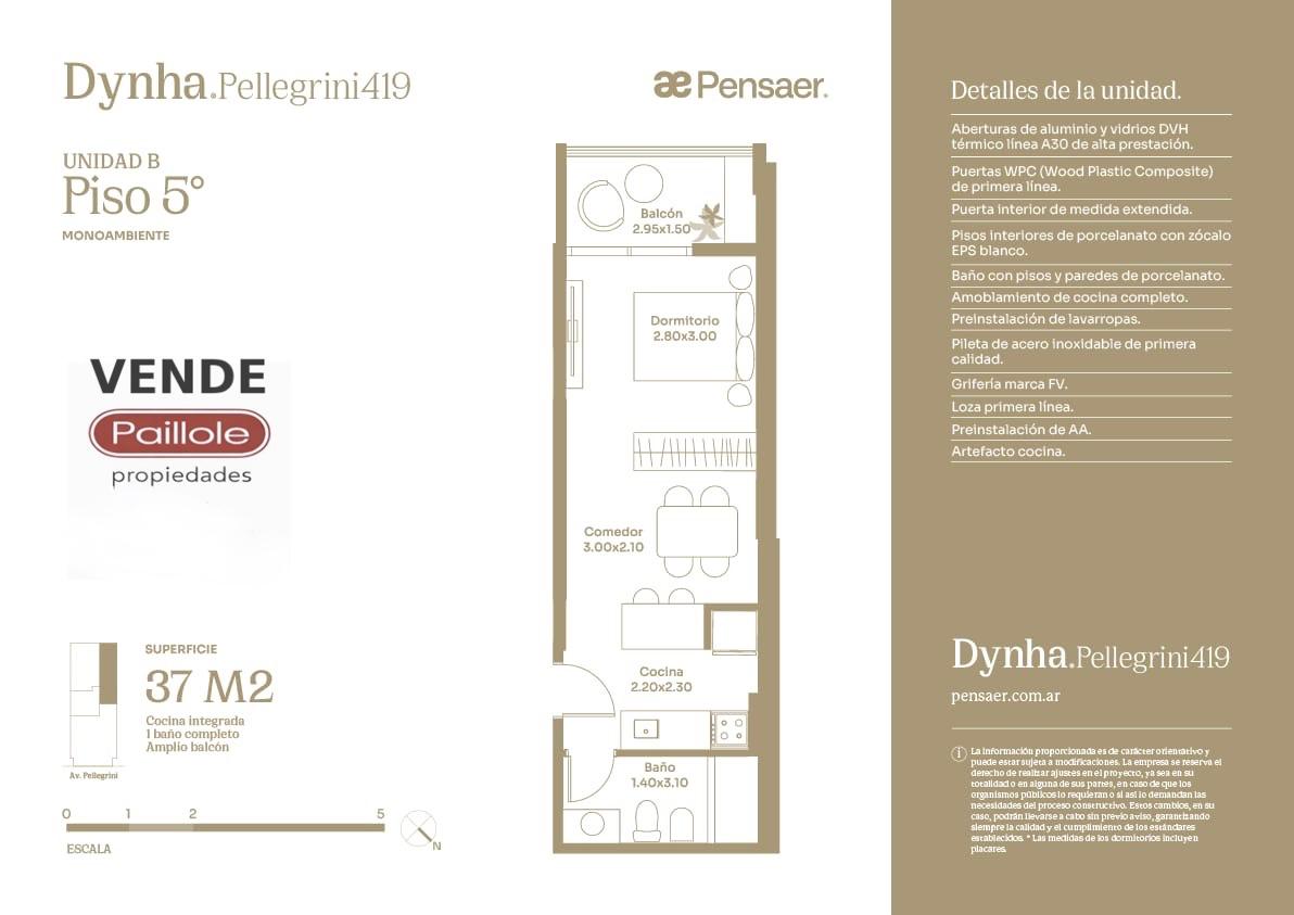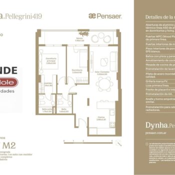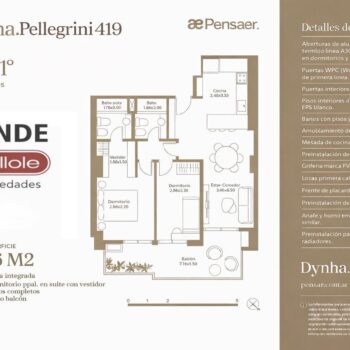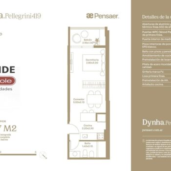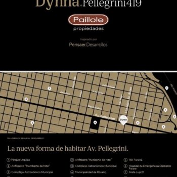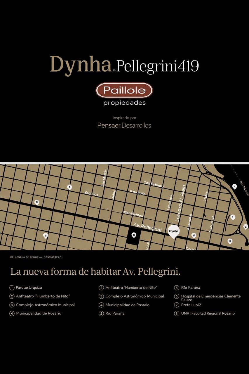 Desarrollado por Pensaer Constructora, Dynha Pellegrini se destaca por su altura en una ubicación estratégica, ofreciendo unidades simples y dúplex de 37 a 161 m².